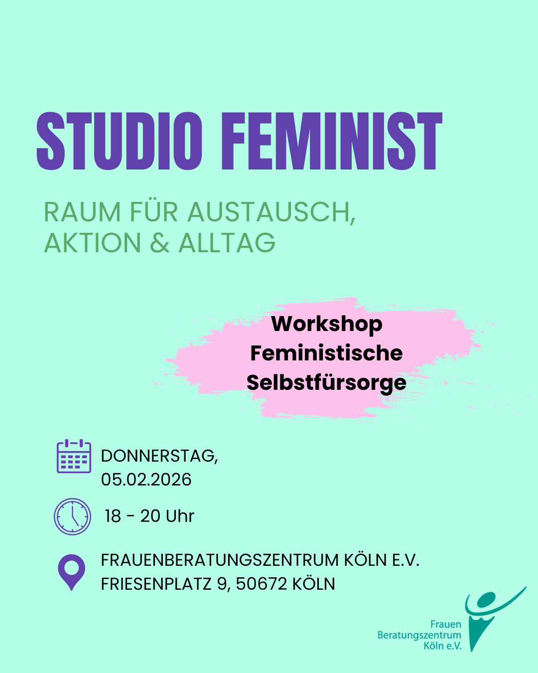 Es gibt einen 2-stündigen Workshop zu feministischer Selbstfürsorge: Zeit für Austausch, neue Perspektiven und ganz viel Self-Care mit politischem Anspruch.
